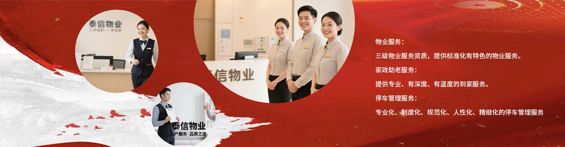 北京泰信物业管理有限公司成立于2000年,具有三级物业服务资质,是集物业服务、家政服务、停车管理于一体的现代化物业服务企业。物业服务:三级物业服务资质,提供标准化有特色的物业服务。家政助老服务:提供专业、有深度、有温度的到家服务。停车管理服务:专业化、制度化、规范化、人性化、精细化的停车管理服务理念。